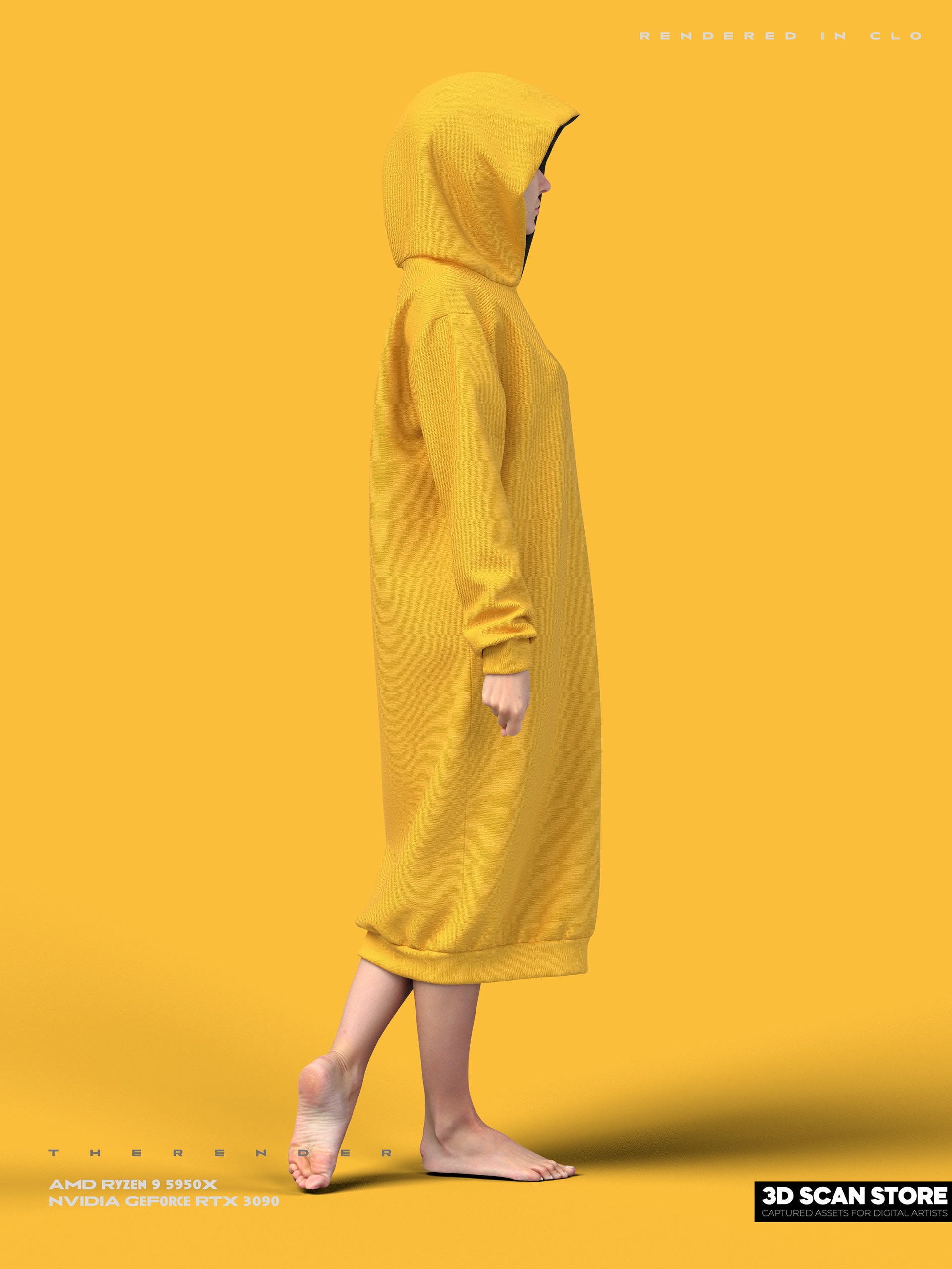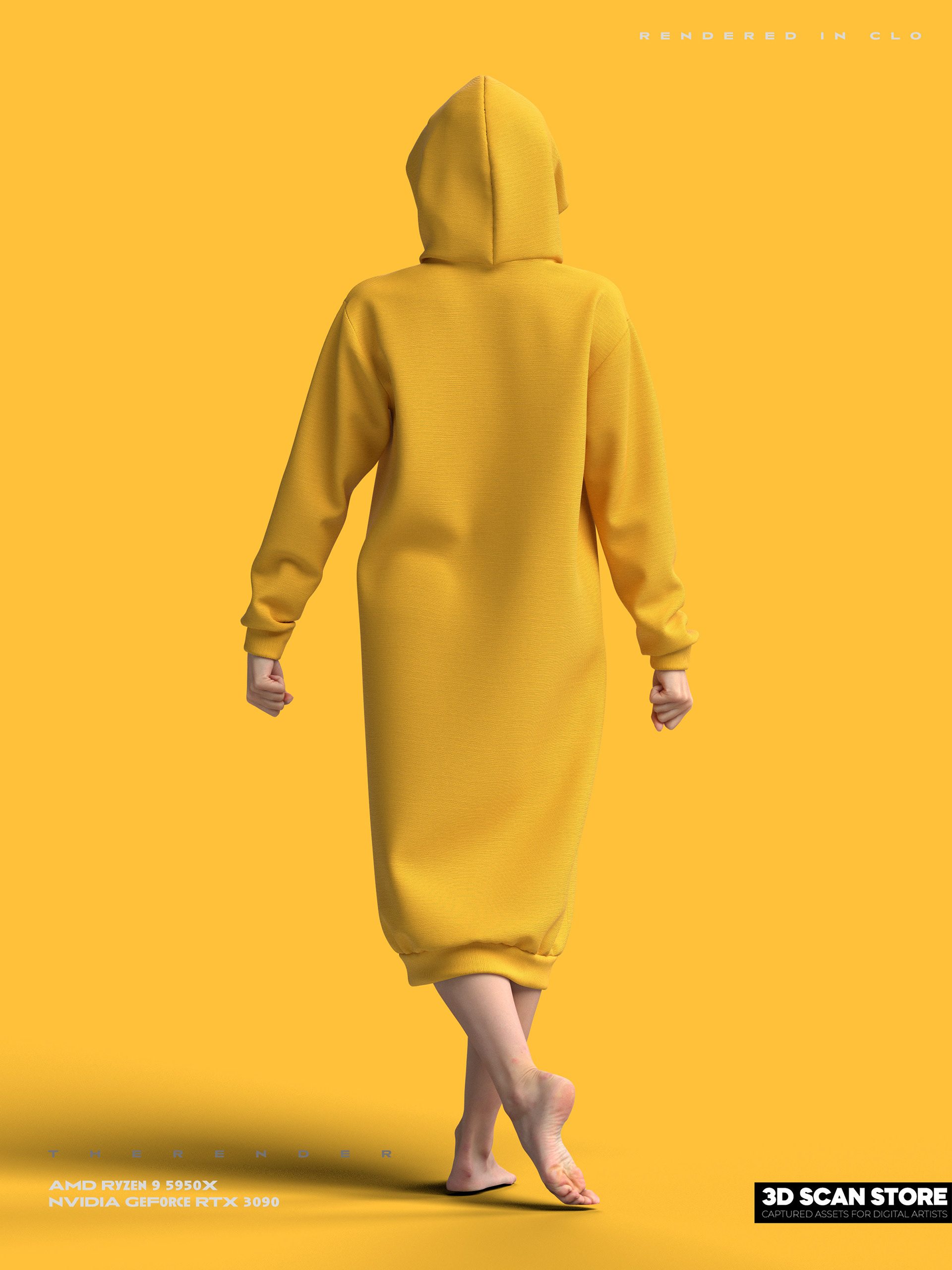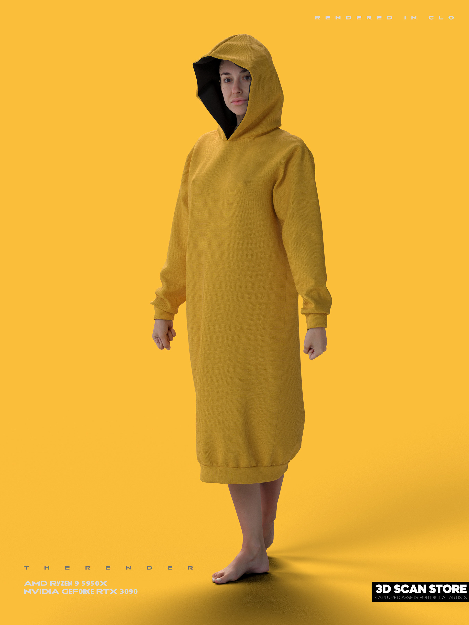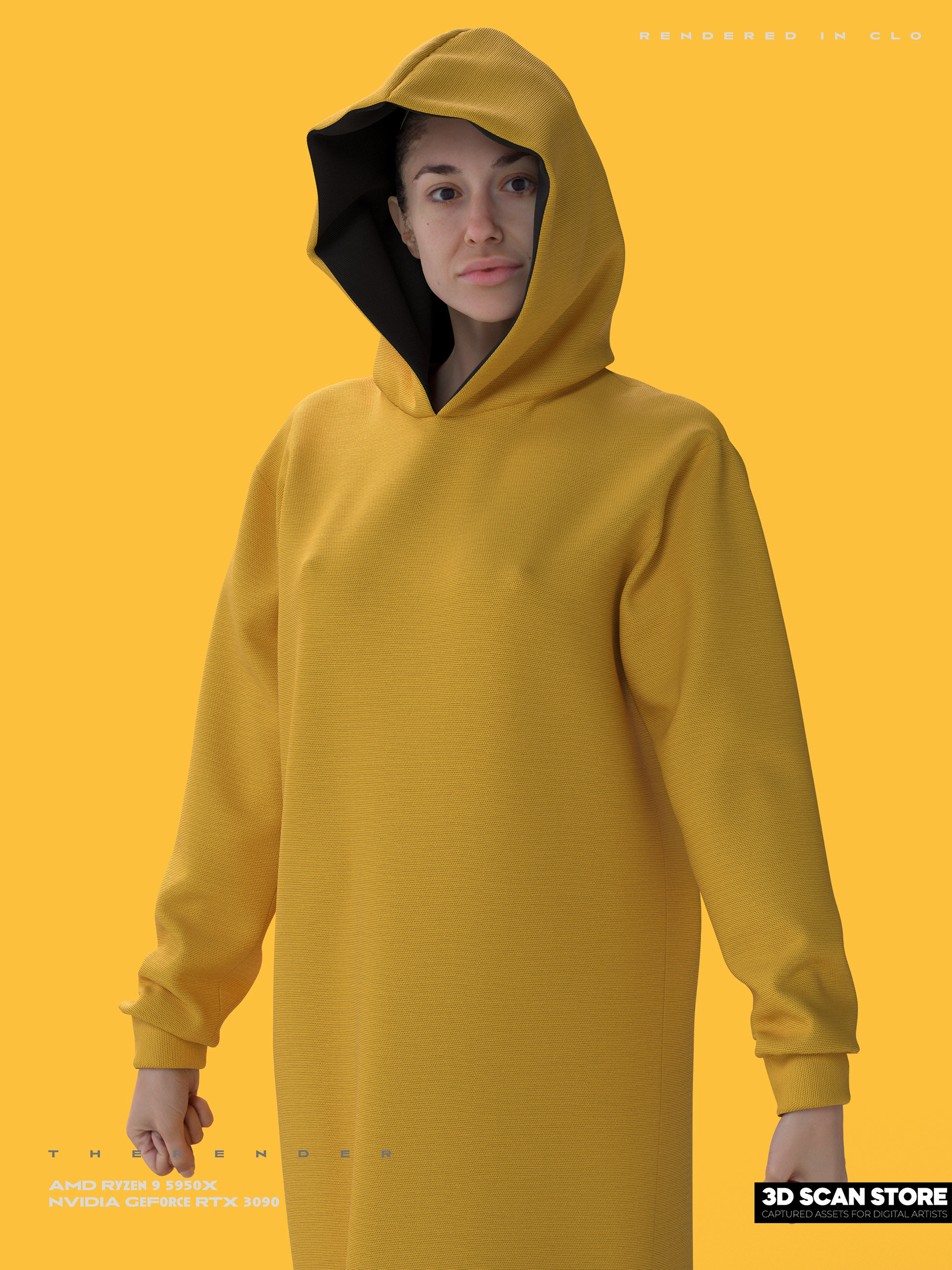 Yellow Long Hoodie - ICONIC 3D + 3DScanStore